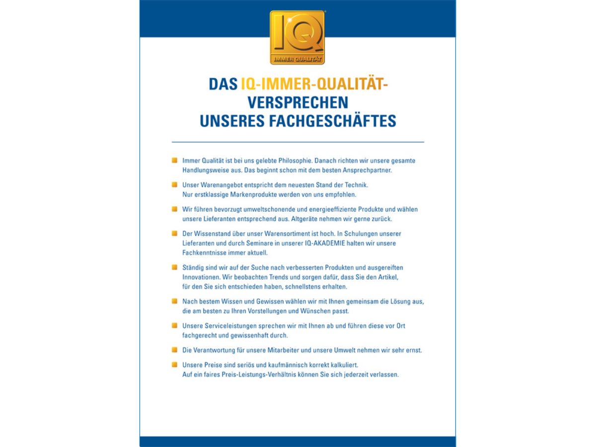 Als 1a–Fachgeschäft können wir Ihnen dies selbstverständlich alles bieten. Getreu unserem Motto: IQ – Immer Qualität!